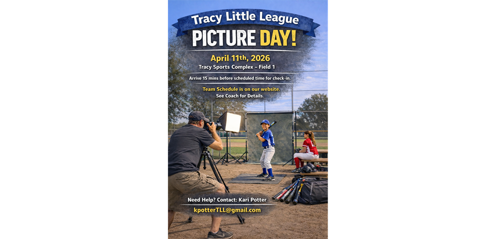 PICTURE DAY, April 11thTRACY SPORTS COMPLEX*NOT LEGACY FIELDS*Click Here for Schedule
